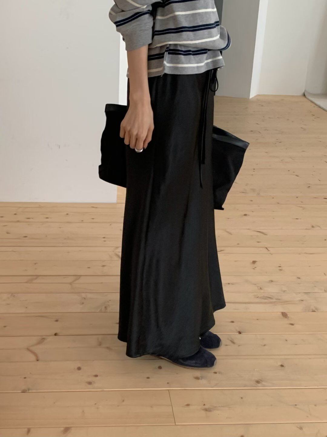 【即納】eyelet satin longskirt